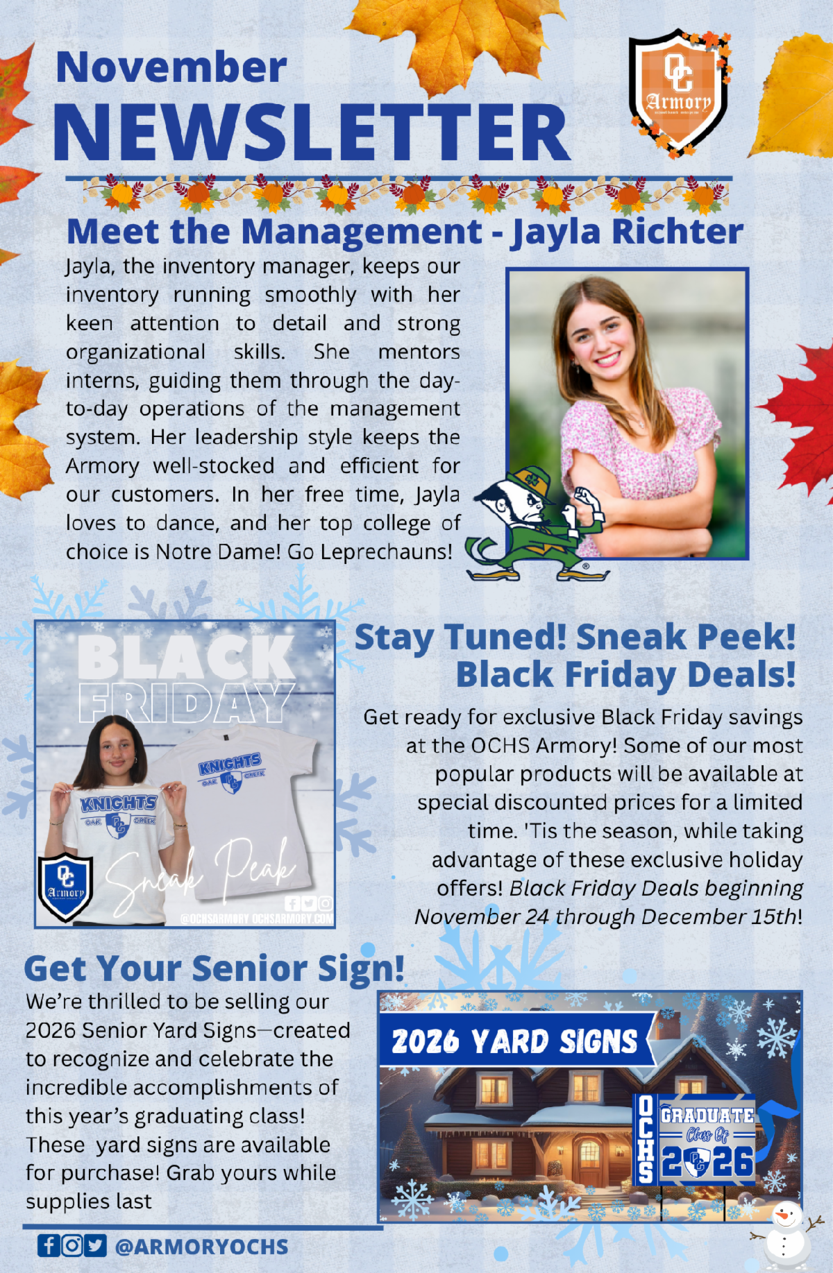 Seniors should be completing their college applications. Colleges have priority deadlines for applications. Consider having all applications completed by Thanksgiving! Families should also be filling out the FAFSA - even if you do not accept what is offered to you, some colleges will use the FAFSA to determine scholarships they will offer to students. Make sure you are looking at our website for scholarships. Students can also apply to scholarships at the colleges they applied to. See our website for information.