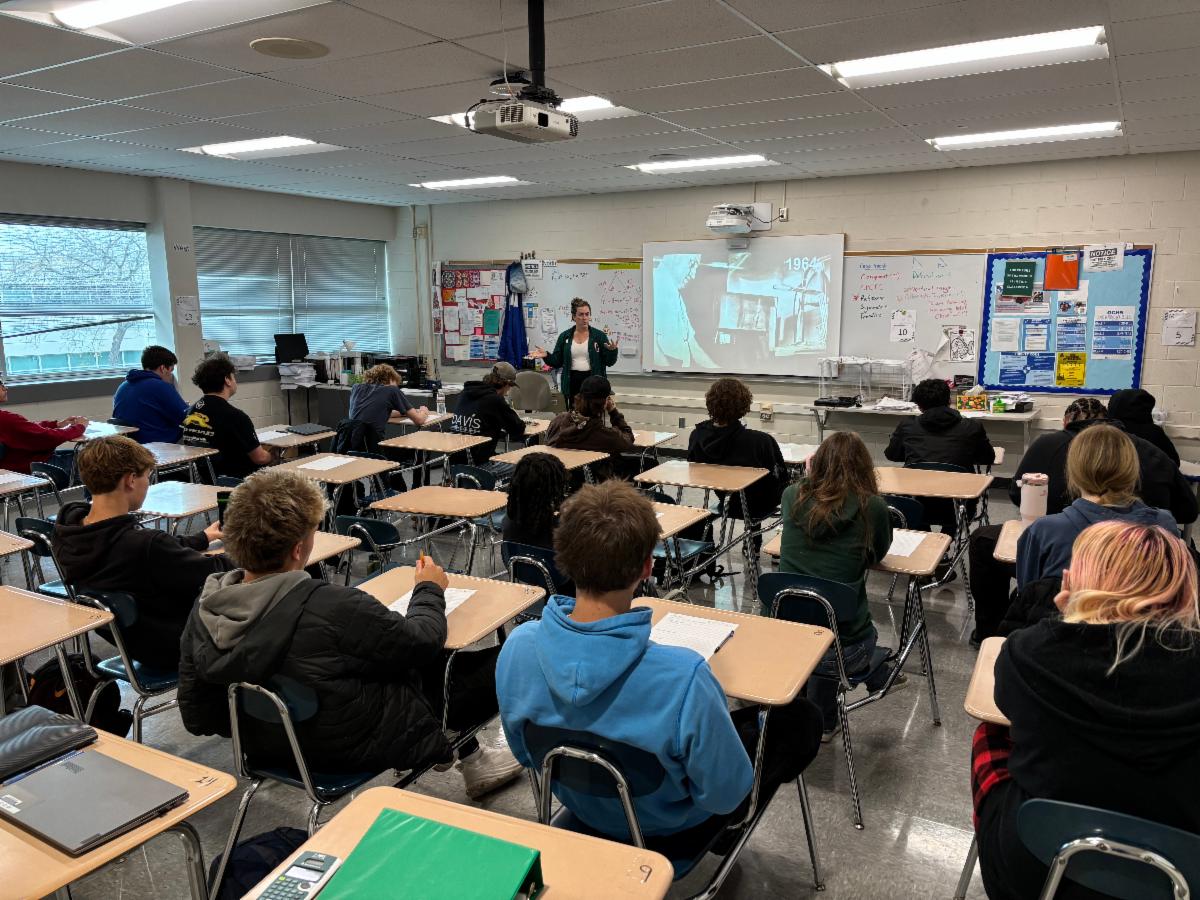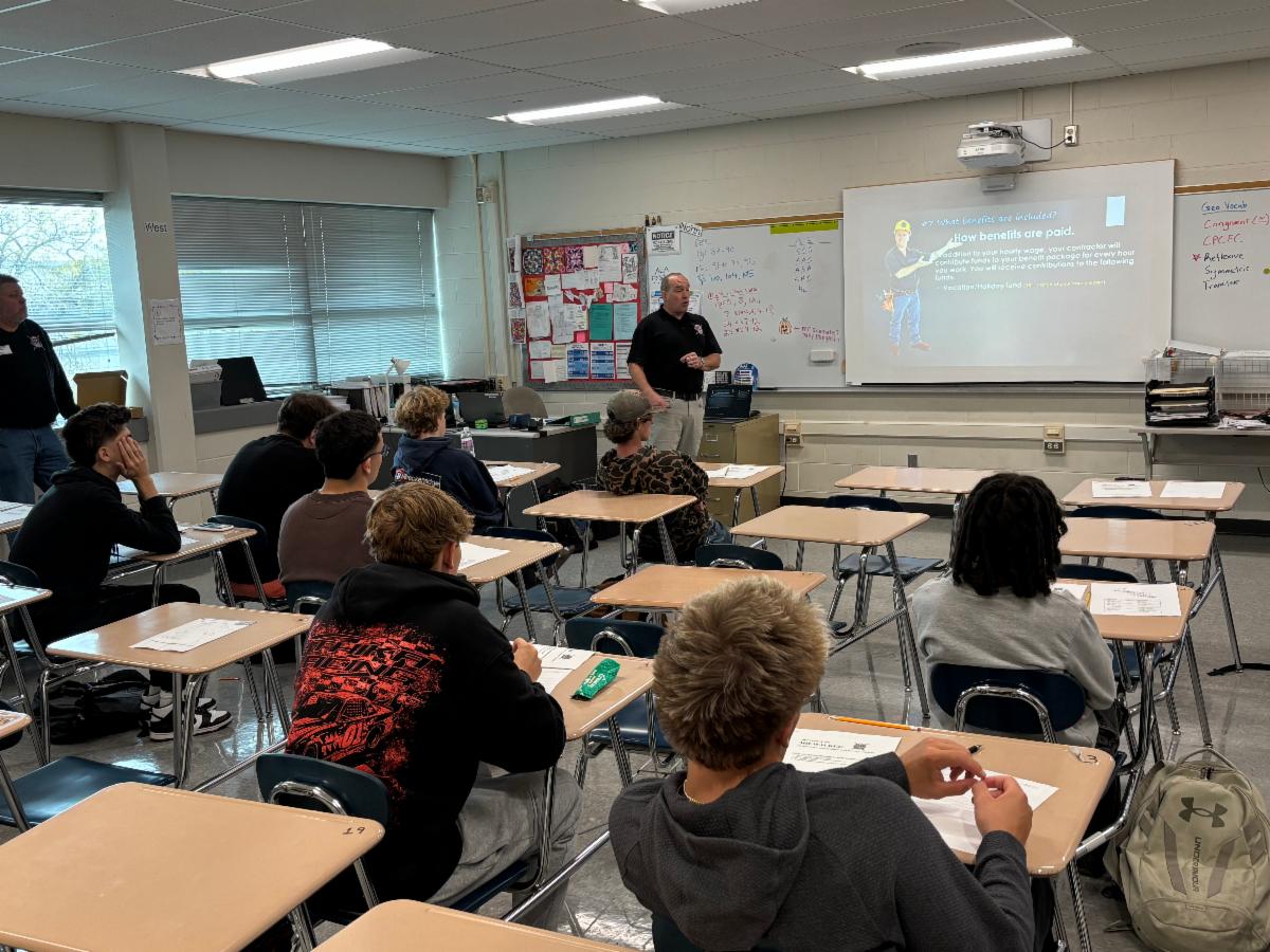 | | Mr. Shumate’s Math in the Technical Field students listen to Chick-fil-a franchise owner, Danica Gramza, about life as a business owner. | | Mr. Shumate’s Math in the Technical Fields class listens to Donald Oldani and Todd Pauly about electrician opportunities through IBEW Local 494. | |