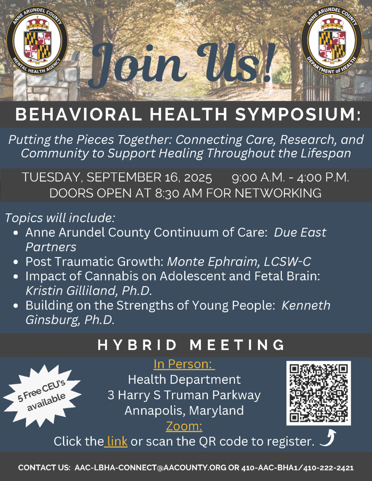| | Anne Arundel County LBHA 2025 Behavioral Health Symposium Free to Attend, Join In-person or Online | | |