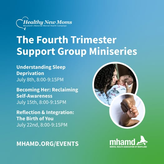 | | Healthy New Moms Webinar and Support Group Series from the Mental Health Association of Maryland | | |