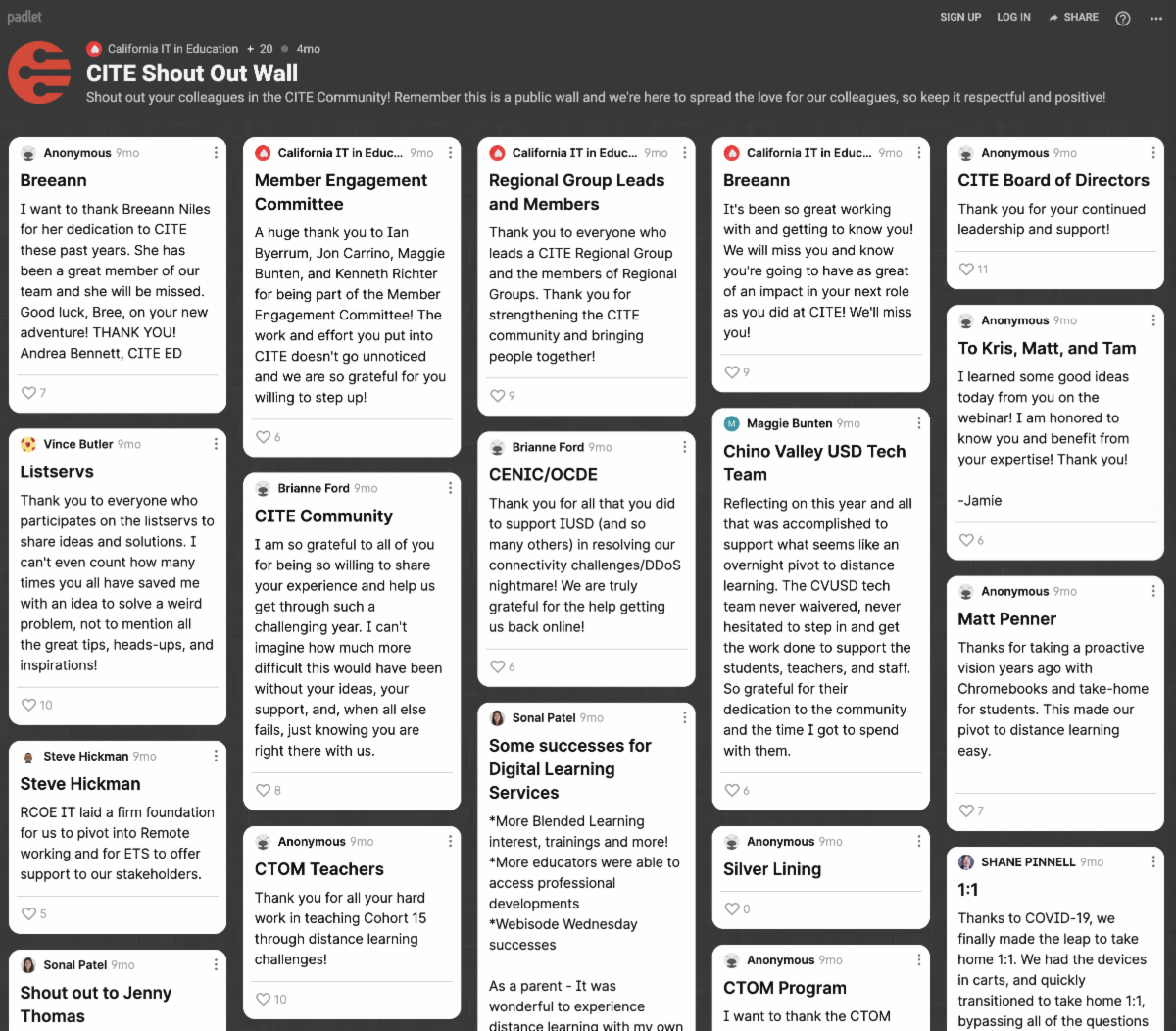 Has someone done something to help you out? Give them a shout out on the CITE shout out wall! Check it out because you may have received a shout out yourself!