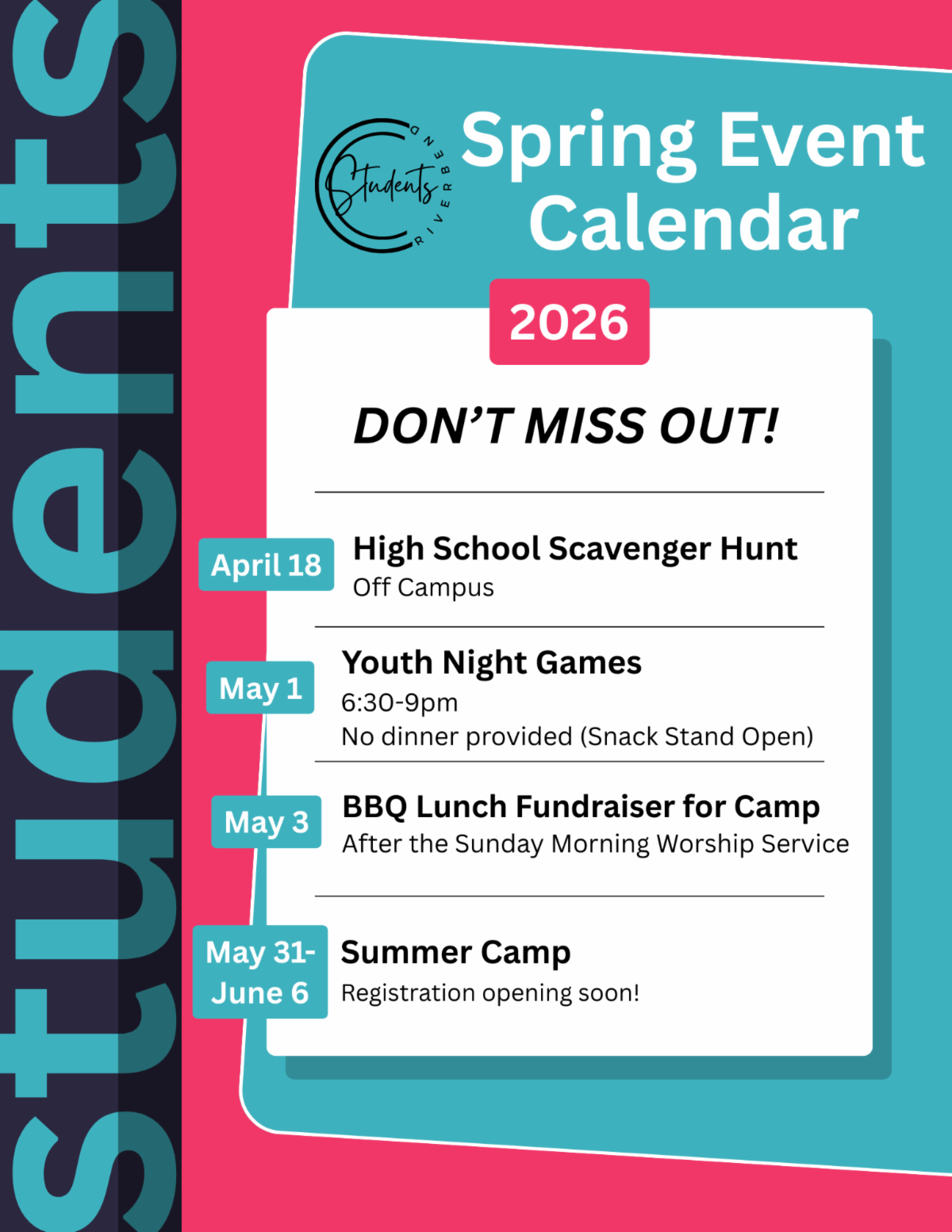 Student Bible Study, Youth Center, 5:30 pm