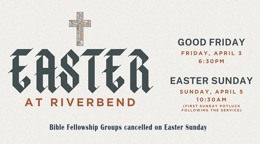 9:00 a.m. — Bible Fellowship Groups (cancelled on Easter, April 5)