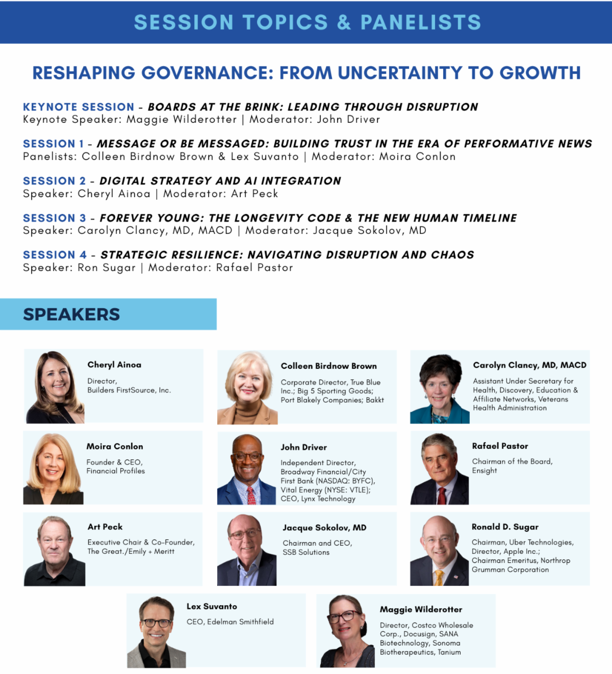 Looking ahead, our Fall programming builds on this energy. We’ll explore board governance topics that are central to future-ready leadership—succession planning, sustainability, healthcare, and emerging governance issues. These discussions will help directors stay grounded, informed, and prepared for the evolving challenges of board service.