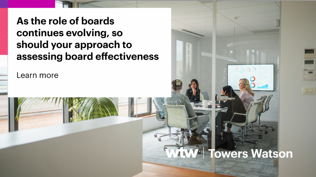 WTW's article, "Tailoring Board Effectiveness to Upcoming Challenges and Opportunities," explores how boards can move beyond the annual self-evaluation to conduct a more holistic effectiveness assessment.