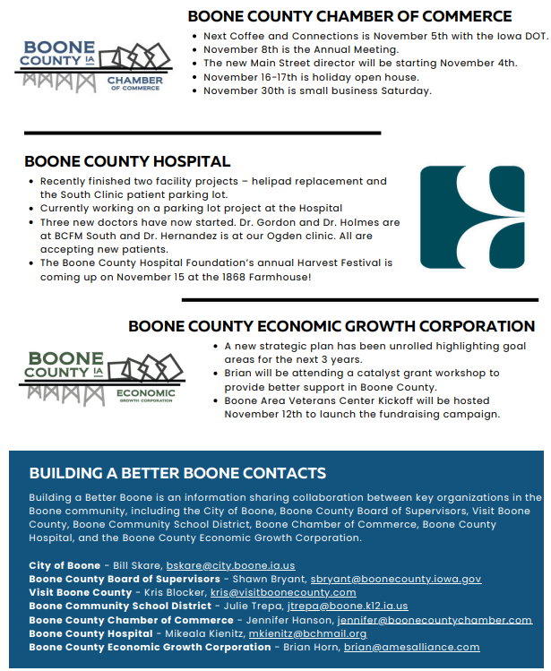 Contact Kris Blocker (515) 433-6900 or kris@visitboonecounty.com for more information on becoming a member.