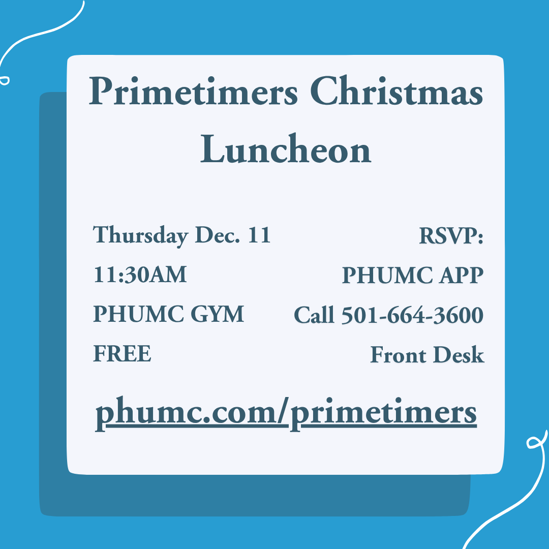 Christmas poinsettias ‘in honor of’ or ‘in memory of’ a loved one are available for $20 each. They will be placed in the sanctuary during Advent and may be picked up after the 11:00PM Christmas Eve service or from the church on Dec. 29-31. Orders will close on December 14th and will be listed in the December 21 bulletin as well as the January Tower Newsletter. You can purchase them by going to phumc.com/poinsettia, calling the church office at 501-664-3600, or filling out the Poinsettia Form at the Welcome desk! Contact Theresa Smith at tsmith@phumc.com with any questions.