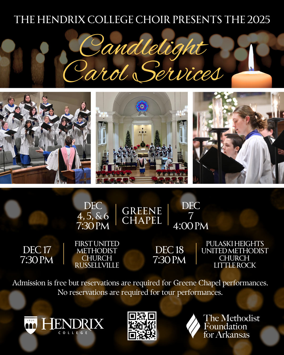Admission is free, reservations are not required. We hope that you can join us as we support the Hendrix College choir and prepare for the Christmas season. Questions? Call the church office at 501-664-3600.