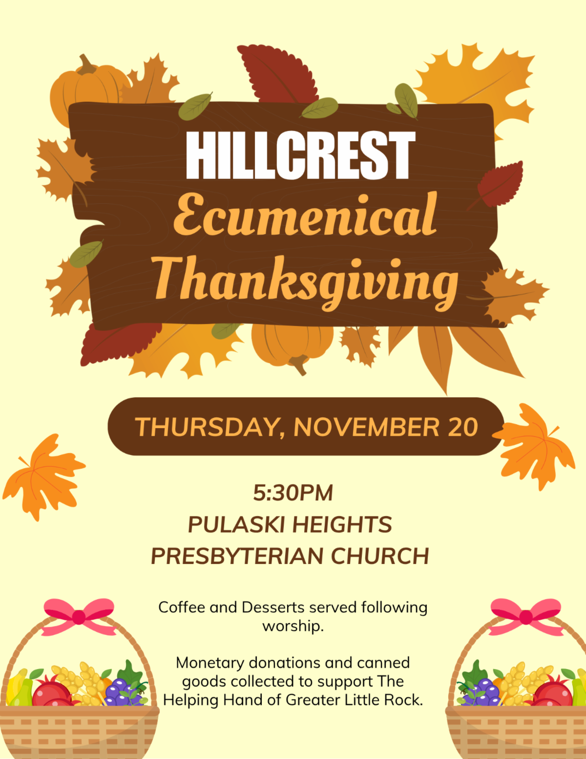 Join us at noon in the Great Hall on Sunday, November 9th for a veterans celebration! This free luncheon is open to all veterans, or family members of veterans. Let us know you’re coming by calling the church office at 501-664-3600 or signing up online at phumc.com/veterans-lunch. Are you or a loved one a veteran that would like to be honored? Let us know by calling the church office at 501-664 or going to phumc.com/veteran.
