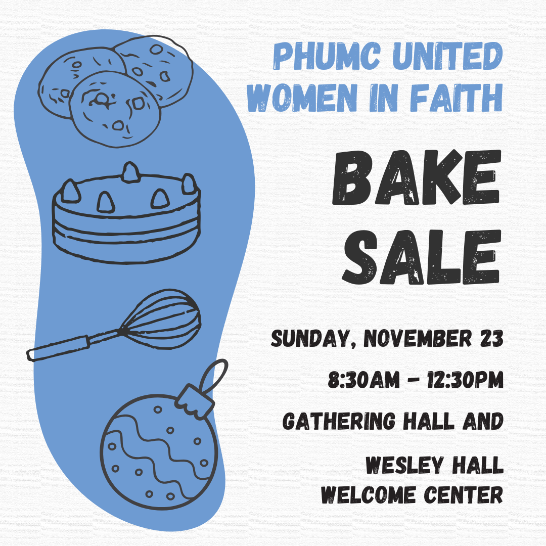 On Sunday, November 23rd be sure to bring your appetite and your wallet. The United Women in Faith are having their annual bake sale in the Gathering Hall and Wesley Hall Welcome Center!