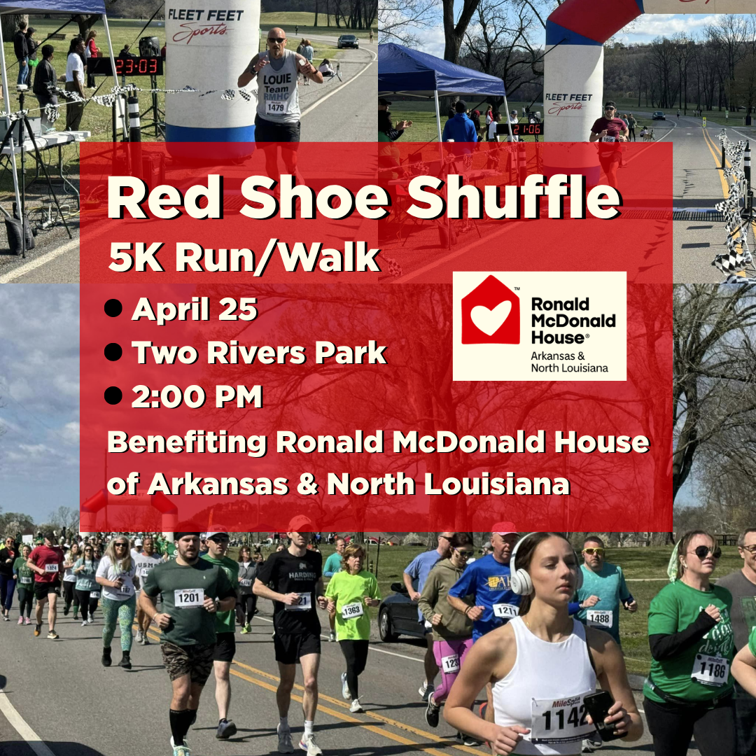 Join Ronald McDonald House of Arkansas and Louisiana for their Red Shoe Shuffle 5k Run/Walk! This event will take place on April 25th at 2:00pm in Two Rivers Park. Proceeds from this year’s Red Shoe Shuffle will directly support the construction of their newest Ronald McDonald House, located within Baptist Health Medical Center – Little Rock. Your support will give families a place to stay just steps away from where their children are receiving treatment. PHUMC is also sponsoring this event! Click the link below to sign up to participate or sponsor this event!