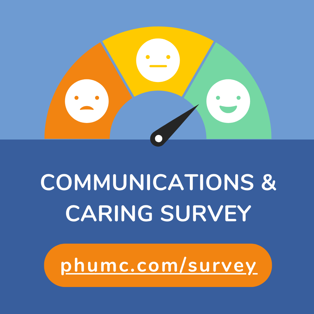 At PHUMC, we want to make sure you feel informed, connected, and genuinely cared for as part of this community. That's why we're asking for just a few minutes of your time to fill out our Communications and Caring Survey.