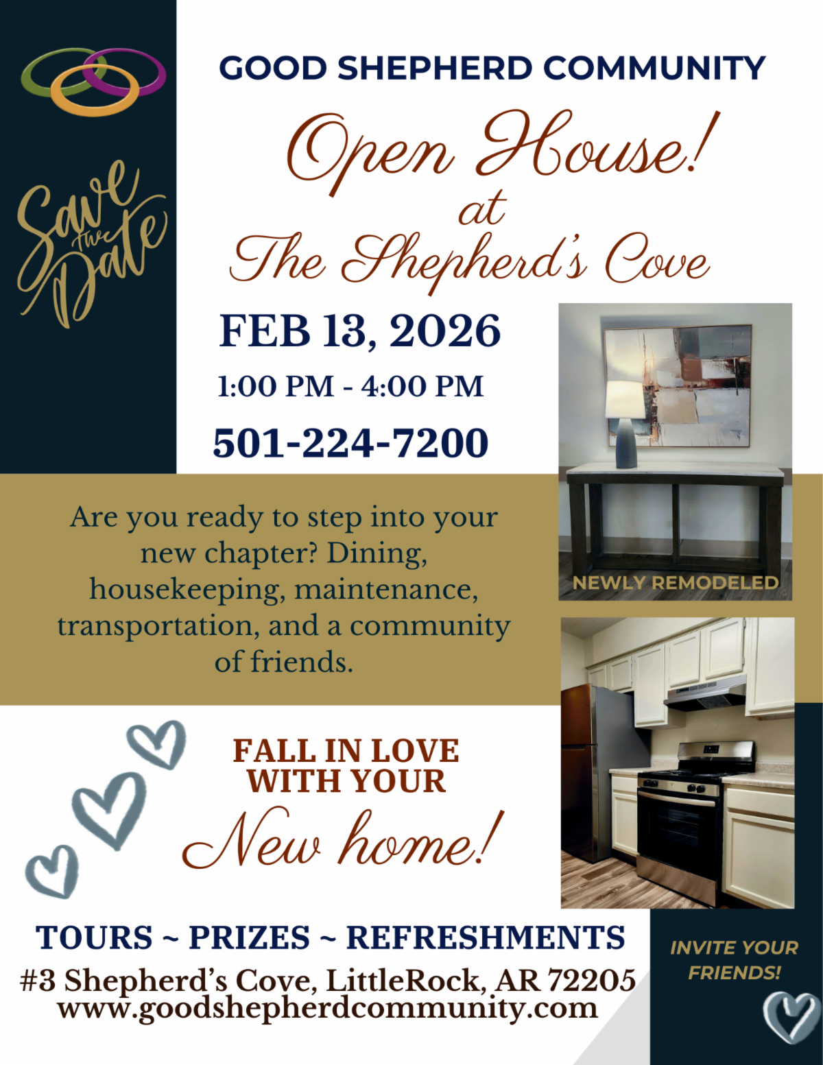 Check out this upcoming open house at Good Shepherd Community! They offer a faith-based community with affordable and quality housing for independently living seniors. The open house is from 1:00-4:00pm on February 13th.