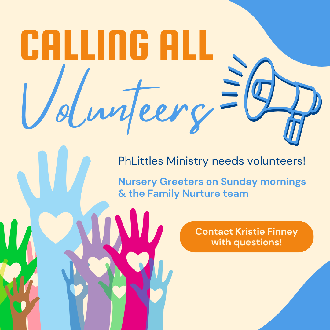 Our PHLittles Ministry is looking for a few caring volunteers to help us create a welcoming, supportive environment for our youngest members and their families.
