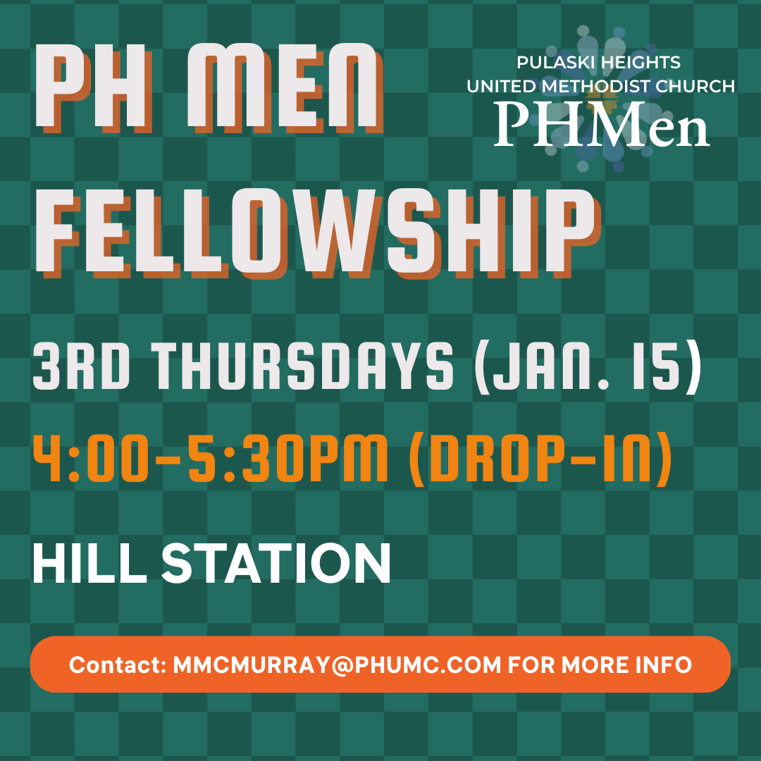 Please RSVP by filling out the Reservation Book at the Welcome Desk, calling the church office at 501-664-3600, or clicking the link below to visit phumc.com/men.