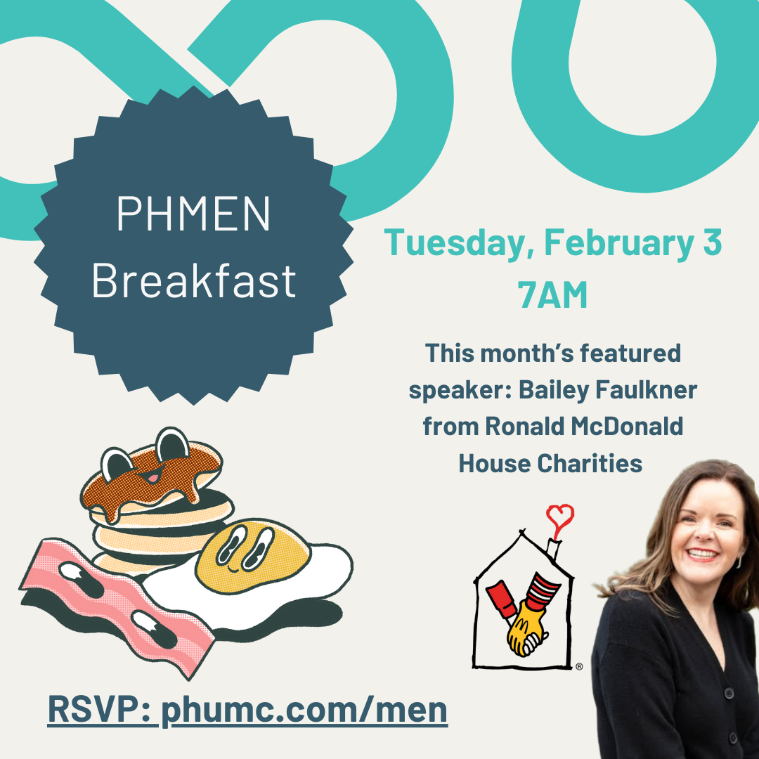 Join PhMen on Tuesday, February 3 for our next PH Men's Breakfast! We will eat together, fellowship, and hear from Bailey Faulkner, Director of Philanthropy and Partnerships at the Ronald McDonald House Charities of Arkansas and North Louisiana.