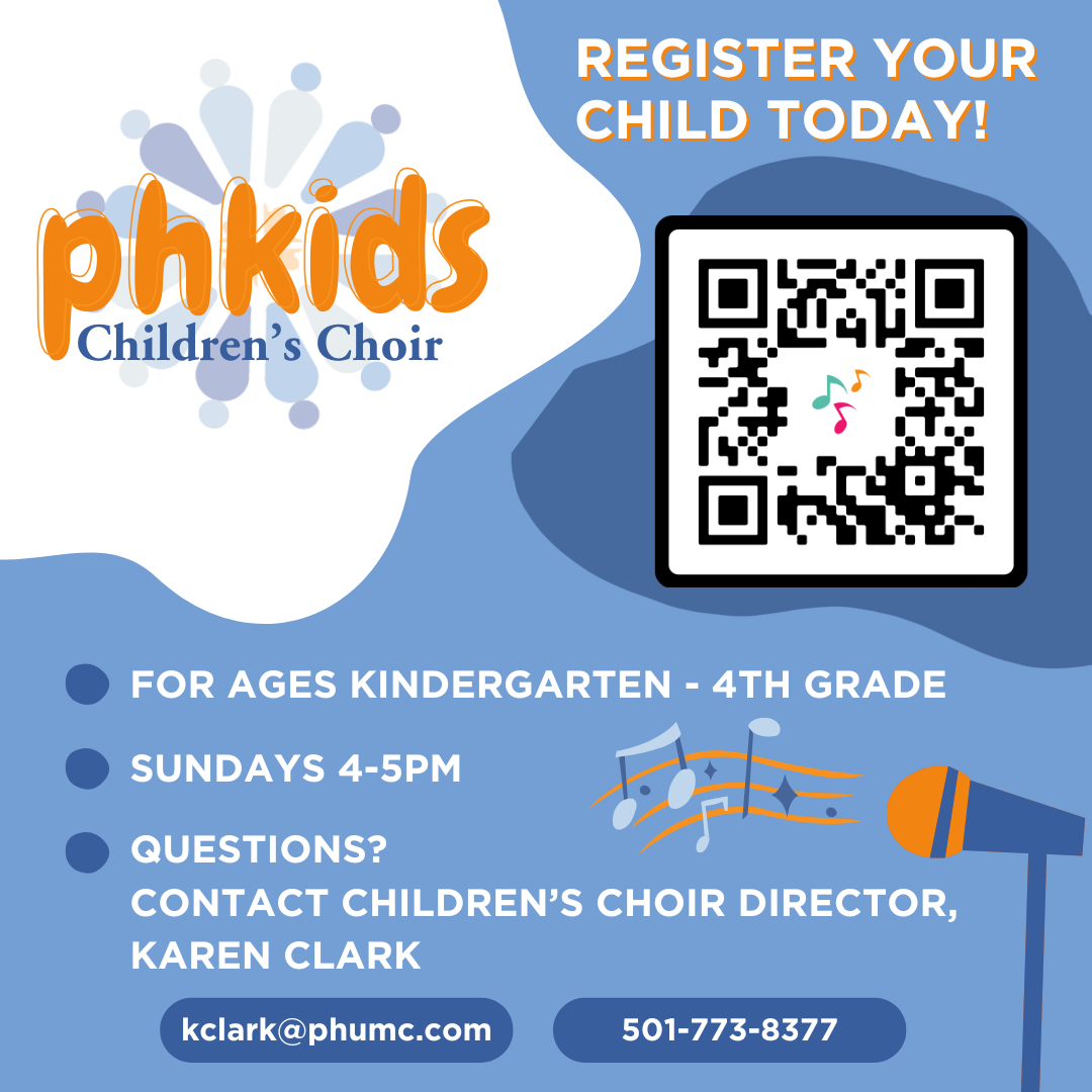 - Children's Choir begins: 4:00-5:00PM, go to phumc.com/childrens-choir to learn more.
