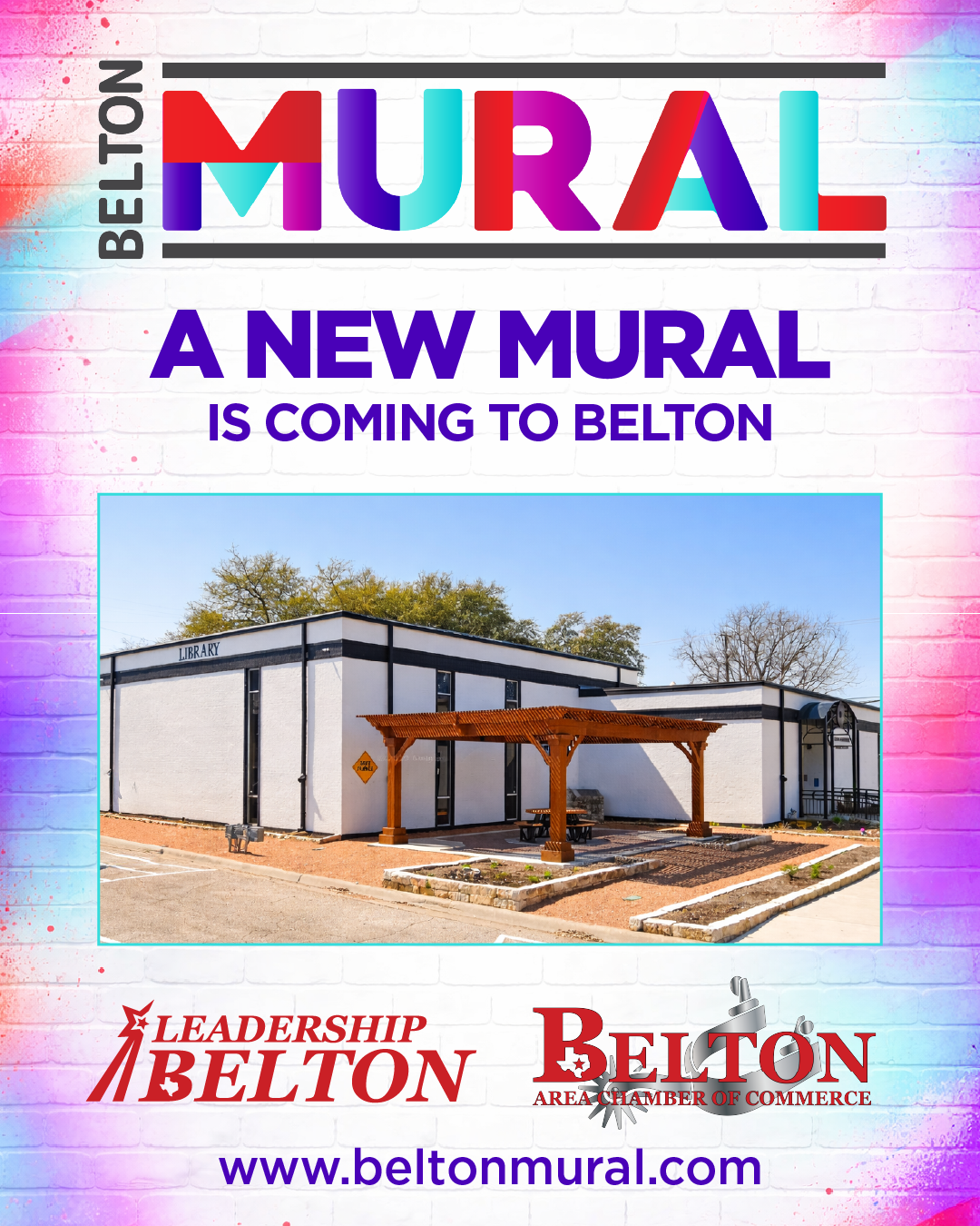 As part of the Belton Area Chamber of Commerce Leadership Belton program, one of this year’s teams is leading an effort to bring a large-scale public mural to the exterior of the Belton Public Library in downtown Belton. The mural is intended to reflect the heart of our community and create a lasting visual landmark.