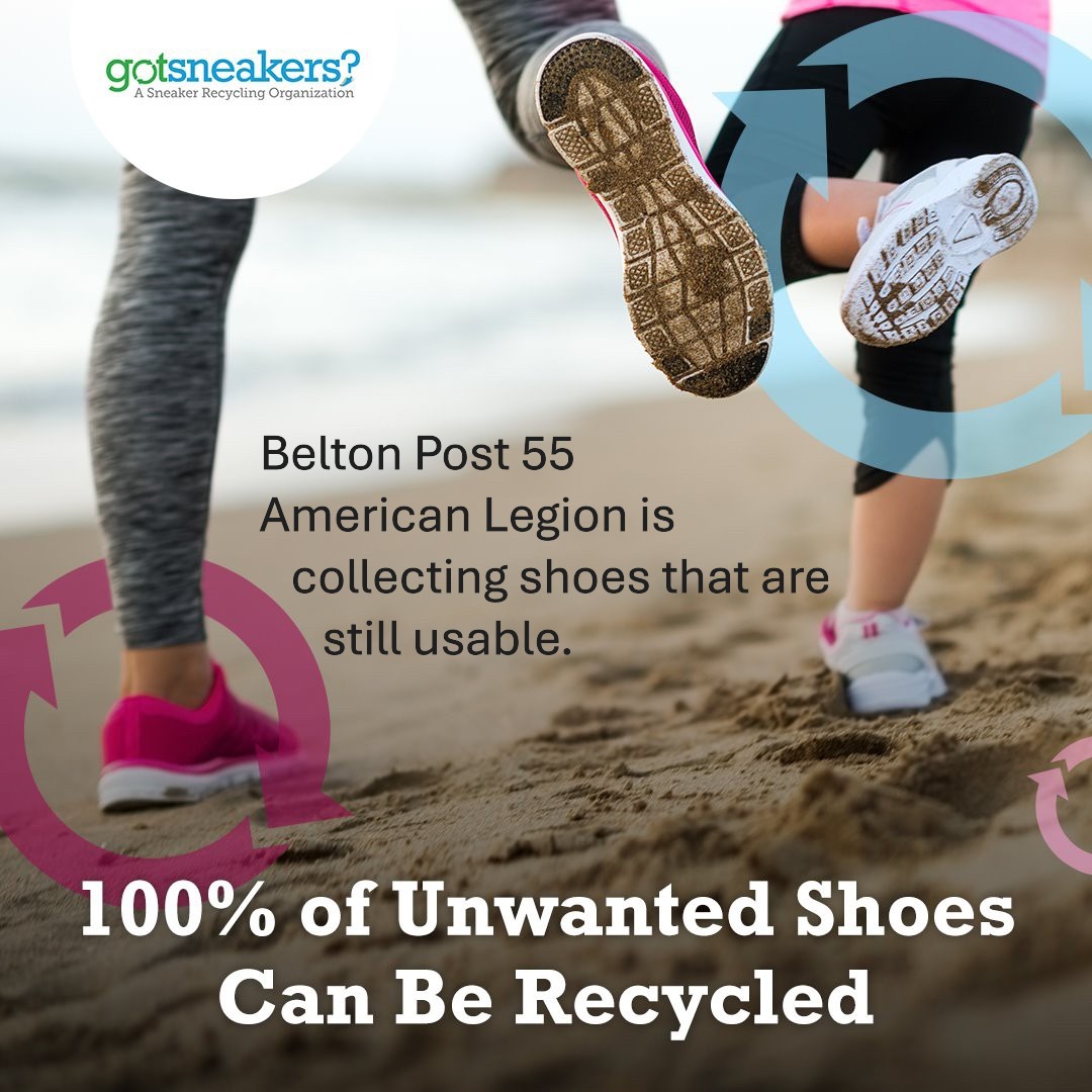 | | American Legion Post 55 Belton is holding a shoe drive collecting used, not torn-up shoes. They have a metal box on their porch at 101 W. Avenue A , Belton, to drop them off. They will be cleaned and then recycled to children without shoes all around the world. | | |