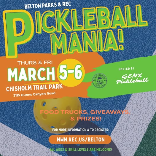 Belton Parks & Rec is serving up TWO days of fun, competition, and community at Pickleball Mania — and you won’t want to miss it!