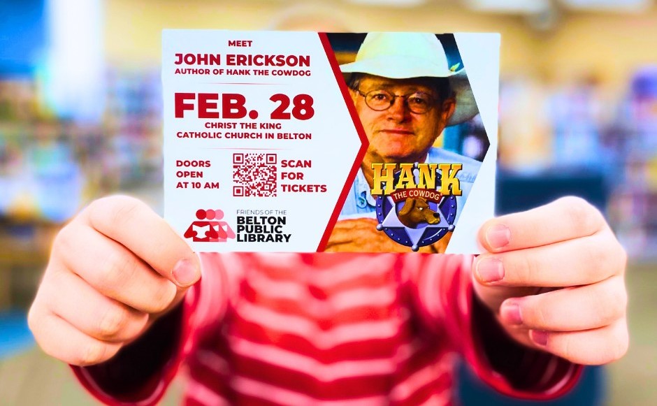 The Friends of the Belton Library invite you to an unforgettable Author Luncheon featuring John R. Erickson, author of the beloved Hank the Cowdog series.