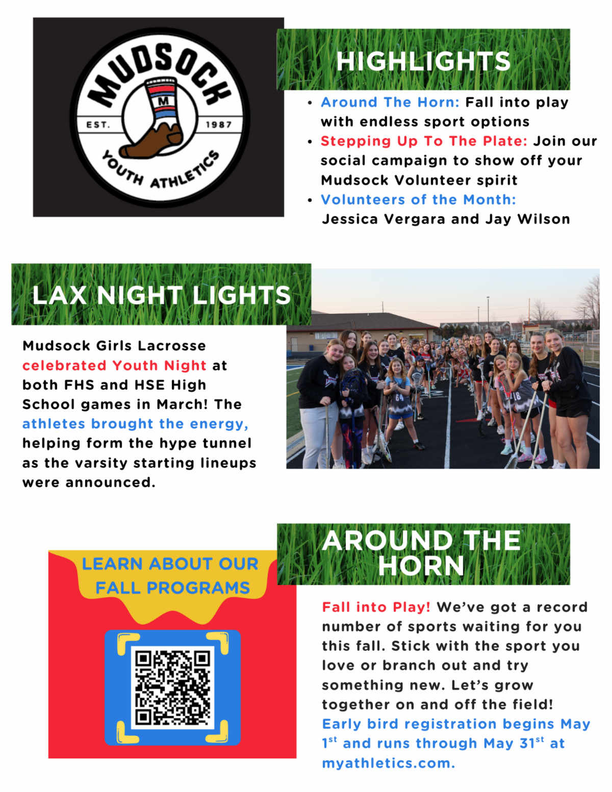We look forward to seeing everyone at the Mudsock Softball Game (FHS vs. HSE) on April 29th at 6 p.m. at FHS.