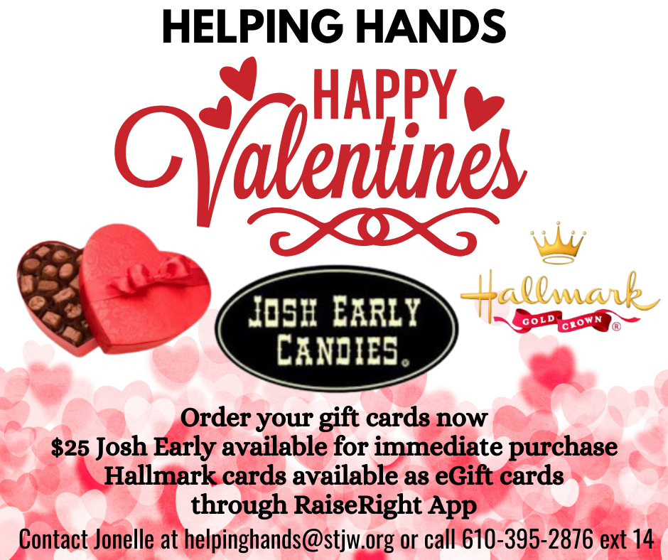 Helping Hands are available for sale Tuesday through Friday next week, 11 AM-1:00 PM in the Parish Office, or before and after every weekend Mass.