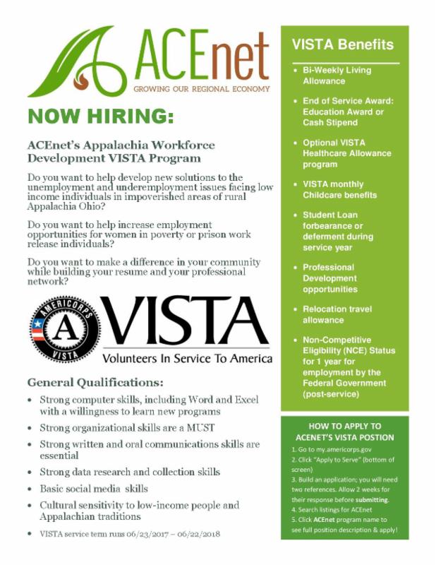 ACEnet Seeks AmeriCorps VISTA for 2017-2018 Year
