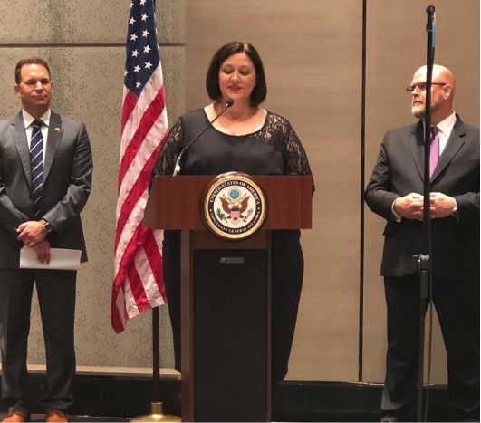 Daria Darnell, Consul General, delivers remarks at the Independence Day reception in Istanbul.