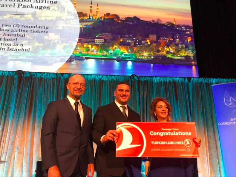 Amal Clooney received the 2018 UNCA Global Citizen of the Year award. In addition, one of THO's main sponsors, Turkish Airlines, gave two travel packages to the raffle winners. Turkish Airlines General Manager Cenk Ocal presented the prizes on the stage.