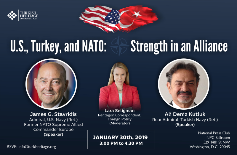 January 30, 2019, THO will host former Admiral James Stavridis along with Turkish Navy Rear Admiral Ali Deniz Kutluk for a discussion on US-Turkey defense cooperation and the NATO alliance moderated by Pentagon Correspondent Lara Seligman. We hope to see you there. RSVP at the link below!