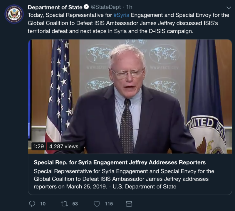 Special Representative for Syria Engagement James Jeffrey Addresses Reporters