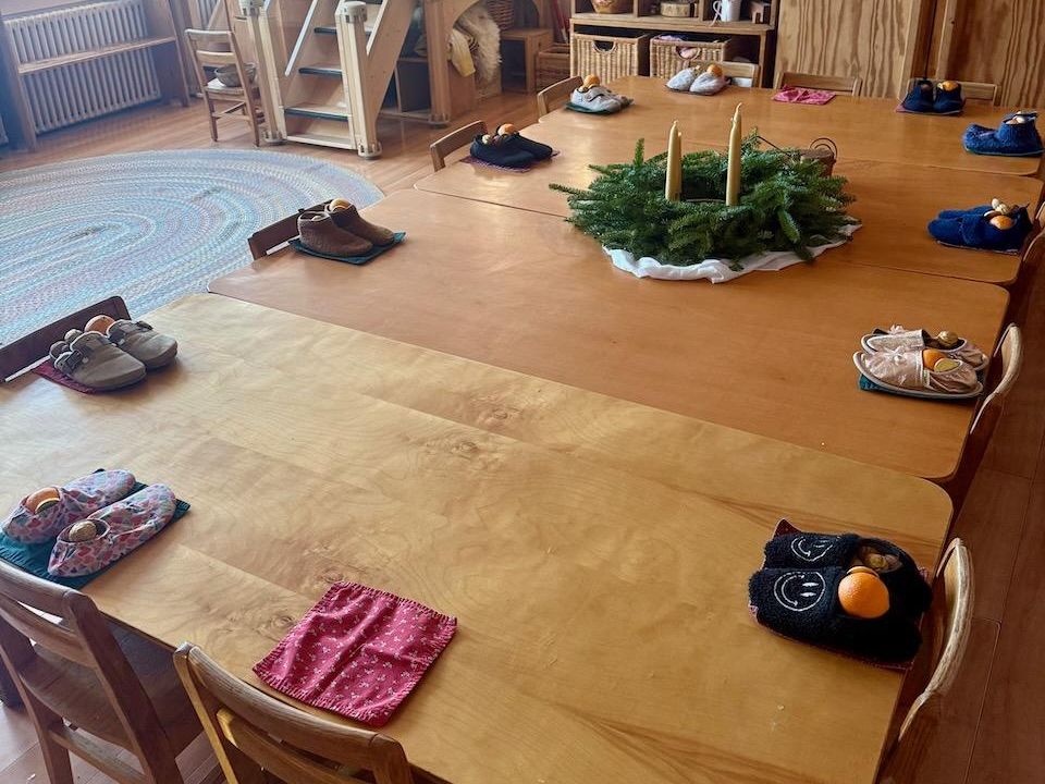 While the Kindergarteners slept at home on December 5th, St. Nicholas made his quiet visit to their classroom. The next morning, children discovered treats tucked into their slippers – a magical surprise that brought wide eyes and wondering whispers. This gentle tradition allows young children to experience the season's magic without overwhelm, honoring their developmental need for reverence and wonder. The joy on their faces reminded us all of the beauty in simple, meaningful moments.