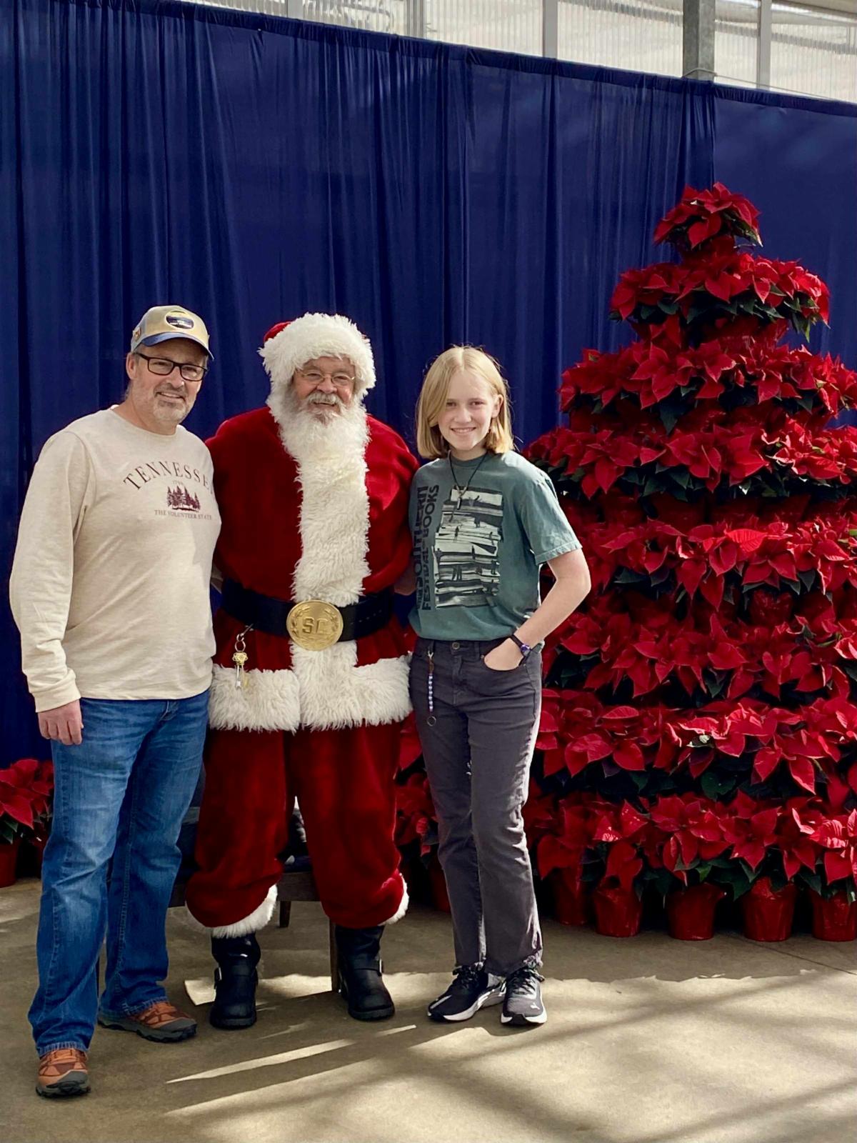 | I rejoined my family in time to snap a picture of them with Santa in front of SCG's traditional poinsettia "tree." | Finally, it was time to cast our vote for our favorite poinsettia variety, which is always a tough choice -- we were a house divided once again this year. On our way out, we each picked up our free 4" poinsettia, the Van der Hengst's annual gift to each guest. | Each year, several RCMGA members attend this festive open house. If you haven't been before, or perhaps it's been a few years, mark your calendar for next year! It is usually held on the second Saturday of November from 10 AM until 2 PM, but you'll want to arrive early for the best selection! Watch their social media pages next fall for details. | | |