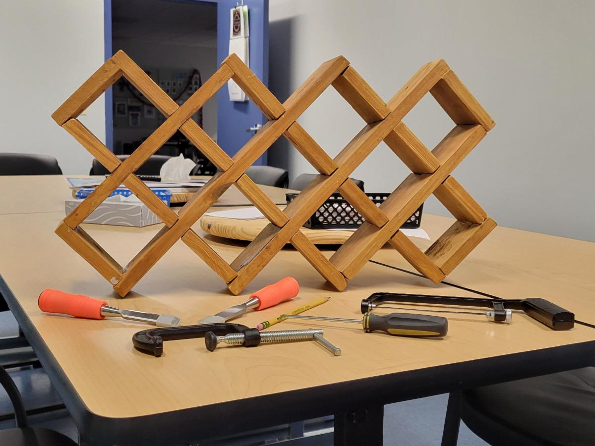 Members of the SCALE Aphasia Program are producing a spice rack in their woodworking class! With this project, our stroke survivors are using modified tools to improve their calculating, measuring, sanding, sawing, and staining skills. They are also working on functional communication, attention, problem-solving, and other critical cognitive tasks. | |