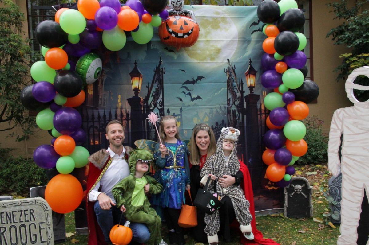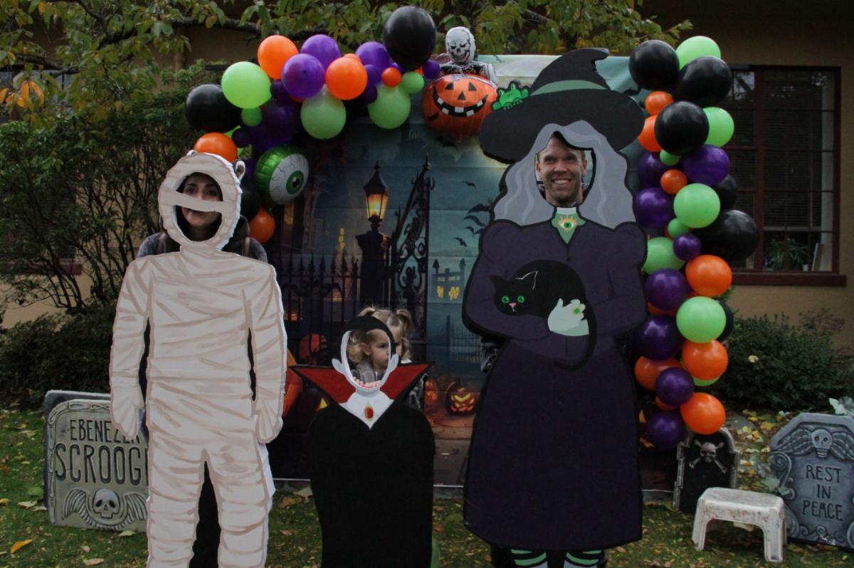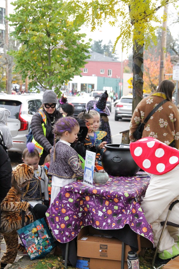 The Multnomah Arts Center’s Community Engagement team participated in this year’s Multnomah Village Trick or Treat event by crafting a fun and memorable family photo op station on the MAC front lawn. There were several handmade cutout characters available, along with a spooky backdrop, for an unlimited number of fun photo choices. Staff were on hand to coordinate families and friends, and to serve as the designated photographer so everyone could share in the memory!