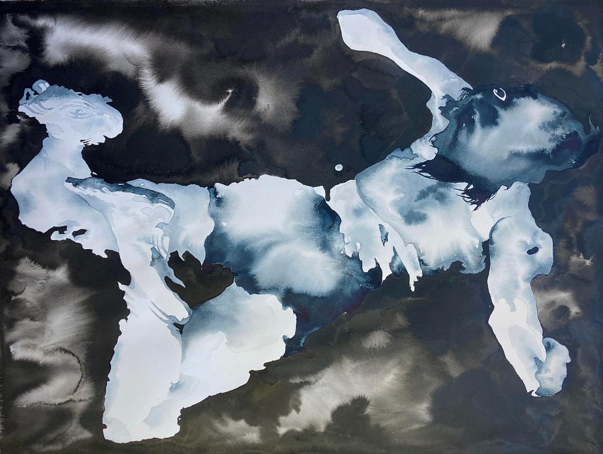“Through ink, I embrace the unpredictable nature of water, allowing figures to emerge and dissolve within translucent layers. This process mirrors the impermanence of identity and the ways we are shaped by our environments, histories, and emotions. In a time of deep social and political division, these works reflect the ways we are all interconnected—how our choices, histories, and struggles ripple outward, shaping the collective experience.”