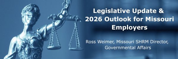 Looking ahead to the 2026 legislative session, employers in Missouri should prepare for potential challenges related to property tax reform, energy reform, and education reform. The state's budgetary constraints, with a forecasted shortfall of $1 billion in the General Revenue fund, may lead to further budget cuts and impact public services that businesses rely on. Missouri SHRM will monitor pre-filings for bills that would impact Missouri employers.