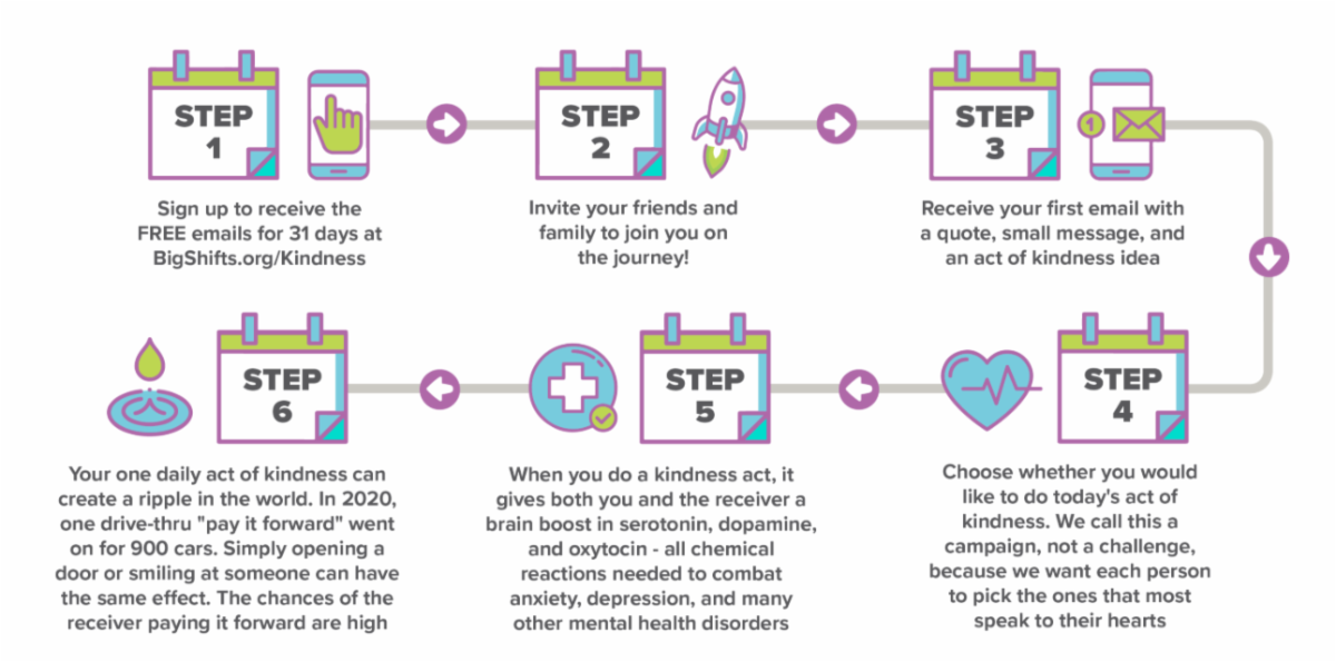 Small Changes Big Shifts is gearing up for their 6th annual Kindness Campaign. This year they are locking arms with another local non-profit in Missouri, Seven Days, to focus on spreading kindness across communities and workplaces.