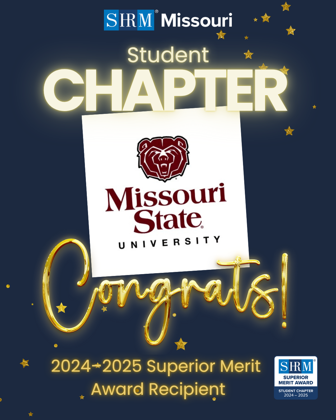 We congratulate the Missouri State University SHRM Student Chapter on this outstanding achievement and thank their leaders, members, and faculty advisors for their continued commitment to excellence.