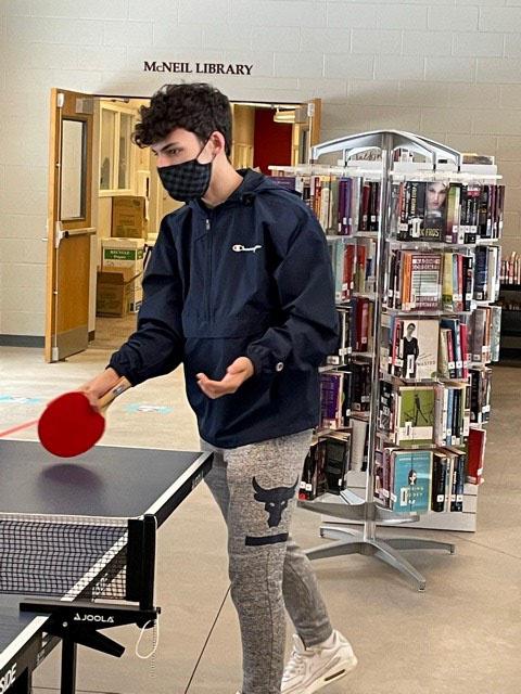 Meanwhile in Trivia and Games, juniors and seniors organized a ping-pong extravaganza among the books!