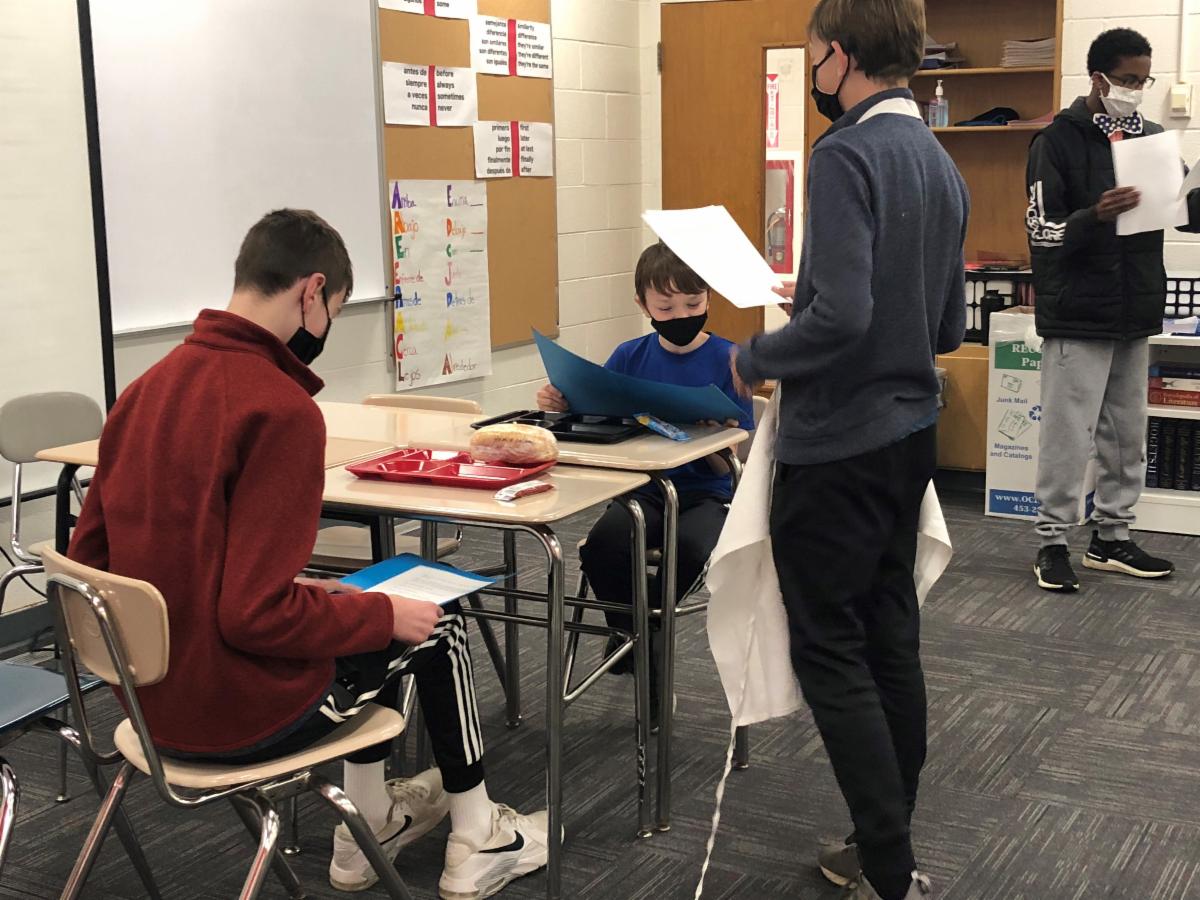 In the Grade 8 Spanish I class, students created a “restaurant scene gone wrong” in order to practice their irregular verbs and family vocabulary — and use language in a very possible real-life scene. They had a great time acting out their scripts, which included funny family characters, unruly waitstaff, creative menus, and authentic cultural expressions.