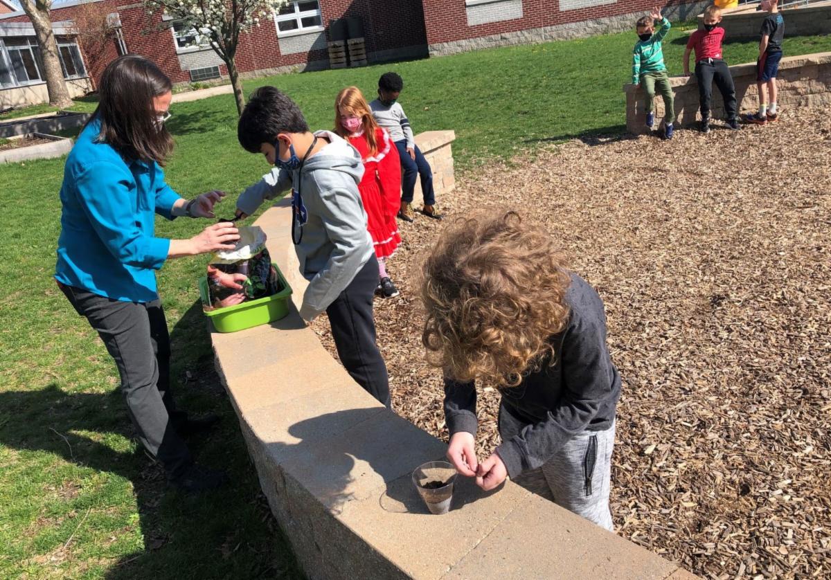 In Grade 1 Spanish, students are learning about flowers and the vocabulary words to name parts of the plant. They even enjoyed some sunshine (before snow resumed this week!) and planted their class “flores” to watch them grow. A special thanks to Sra. Zimmerman for joining in their fun!