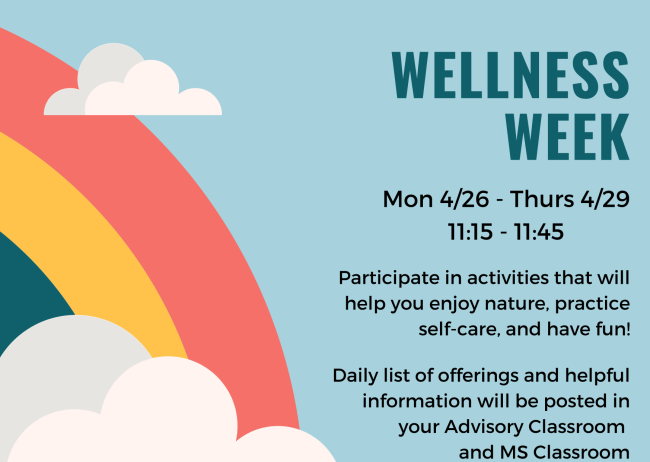 While our community’s health and well-being has been front of mind for every facet of the MPH program, next week (Monday through Thursday, April 26 – 29) has been specifically designated Wellness Week. During each day’s advisory period, students (and faculty) will be partaking in a number of activities, mostly outdoors, to promote self-care and wellness in all forms. (The daily list of offerings and related information will be posted in students’ advisory classrooms and Google classrooms.) From nature walks to tea tasting, yoga, poetry, crafts, dancing, and much, much more, all participants will have the opportunity to pause, reflect, exhale, and find joy — perhaps in surprising ways or unusual places!