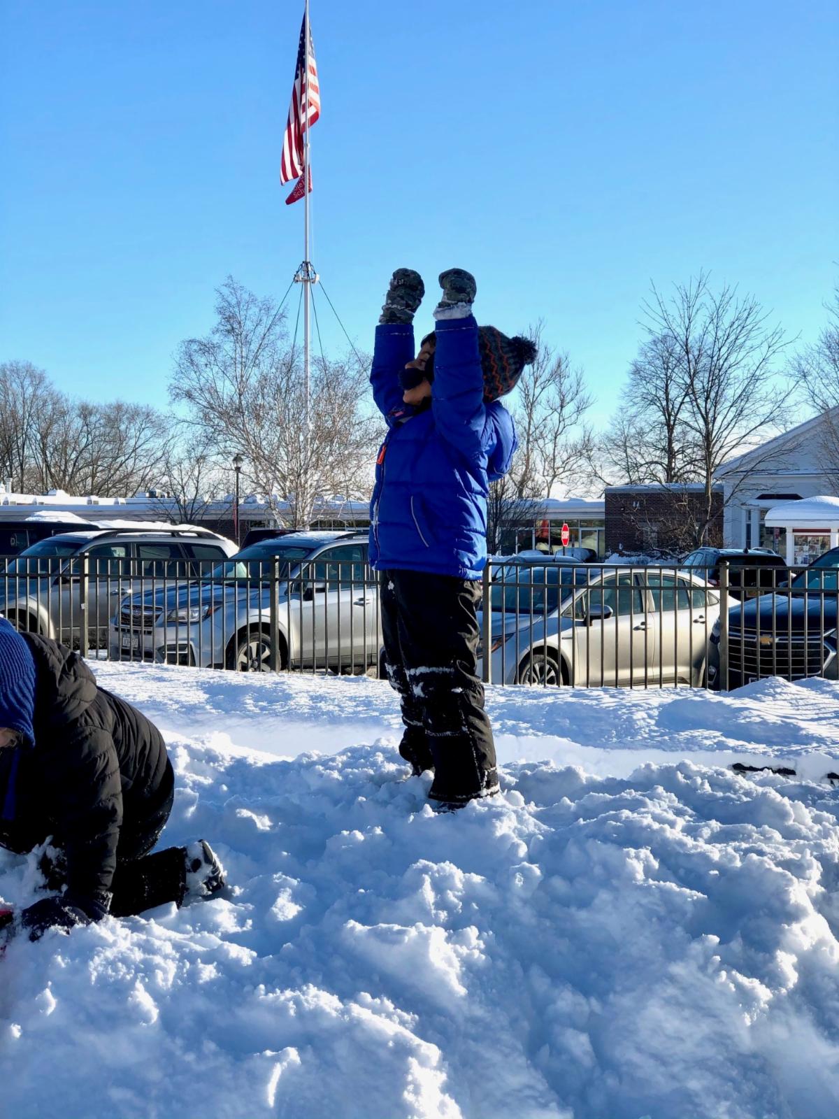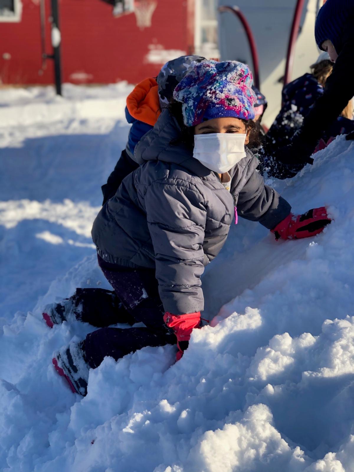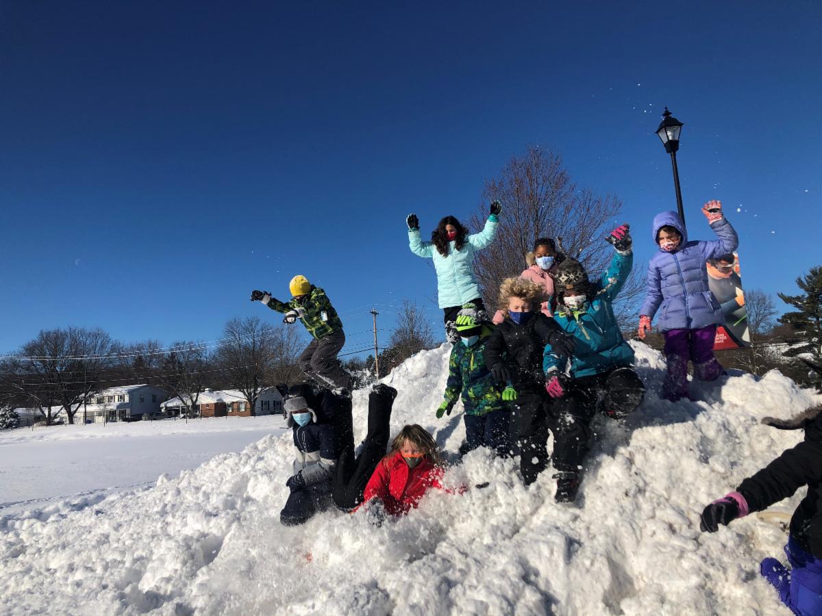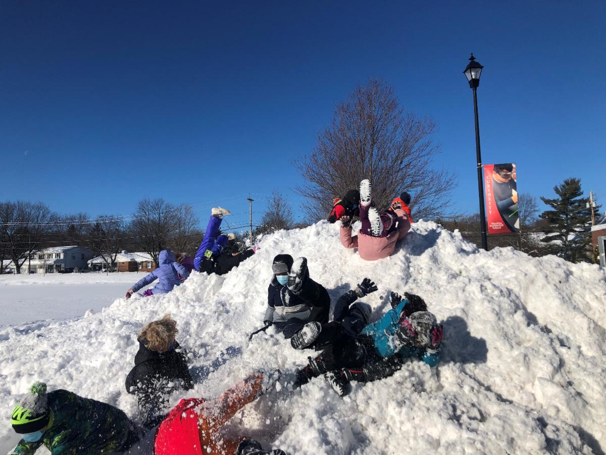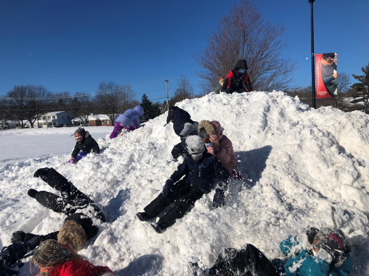 Mother Nature provided the perfect setting for students in recess this week. Take a look at the pictures below: Grades 2 and 3 tackling a giant snow pile, and Pre-K students conquering the playground