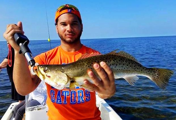 Brandon McArthur from Gainesville, FL, landed this nice trout using amber/ghost Live Target Baitballs.