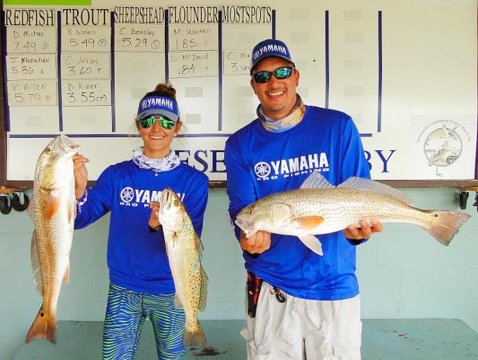 | Vanessa Allen & Vinny Foo from Gainesville, FL, weighed-in a redfish that held 3rd place for little while. |