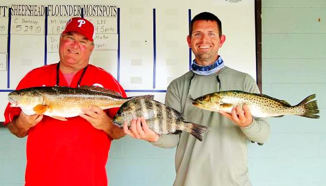 | Jason Mora from Racine, OH, Stuart, Jr., & Tristan Smith from Alachua, FL, had blast catching trout & sheepshead. |