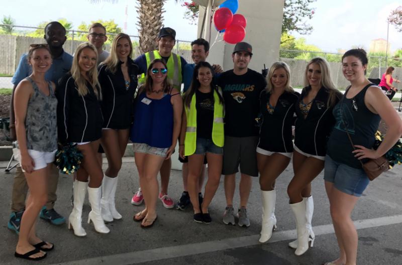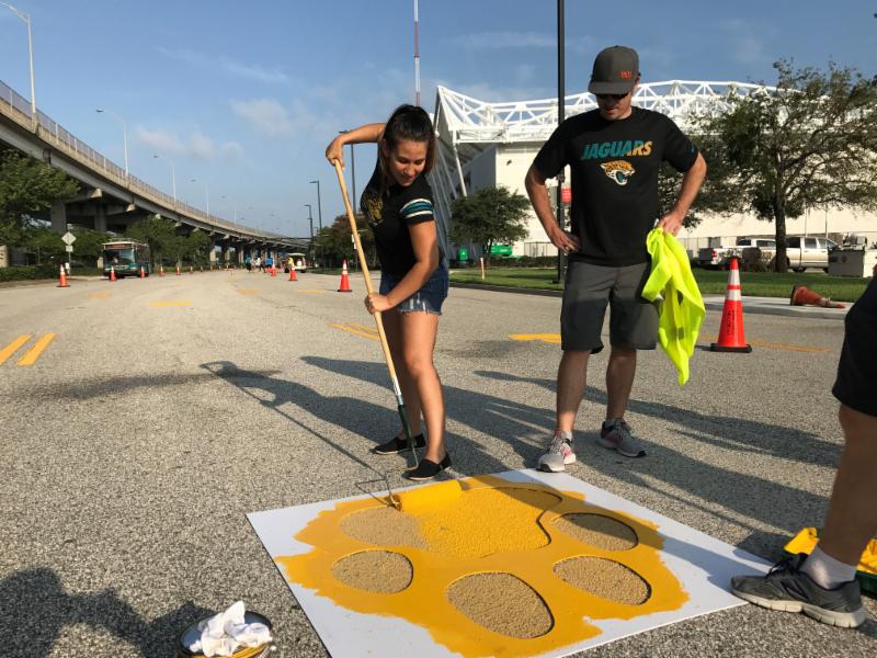 acted as team captains joining other members of ImpactJax for the Jacksonville Chamber's annual Painting of the Paws event. Hundreds of volunteers came together to show off their Jaguars pride (and painting skills) to touch up the jaguar paws leading fans to Everbank Field on game day. We're happy to report Adam and Ashley's teams successfully painted between the lines - you can see their works of art on Bay Street right next to the new Daily's Amphitheater.