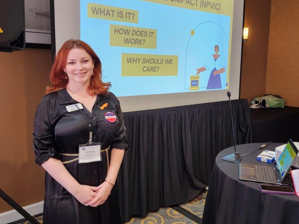 Sarah Peacock from Floridians for National Public Vote presenting NPV at the June 6 LWV Florida Conference Workshop.